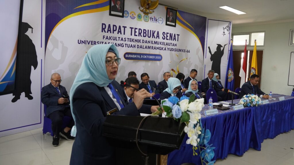 Surabaya, 9 Oktober 2025 – Fakultas Teknik dan Ilmu Kelautan (FTIK) Universitas Hang Tuah (UHT) menyelenggarakan Yudisium ke-66 yang berlangsung dengan khidmat di Aula FTIK UHT. Acara tersebut dibuka secara resmi oleh Ketua Senat FTIK, Prof. Dr. Ir. Ninis Trisyani, MP, dan dihadiri oleh jajaran pimpinan fakultas, dosen, tenaga kependidikan, serta perwakilan alumni.
